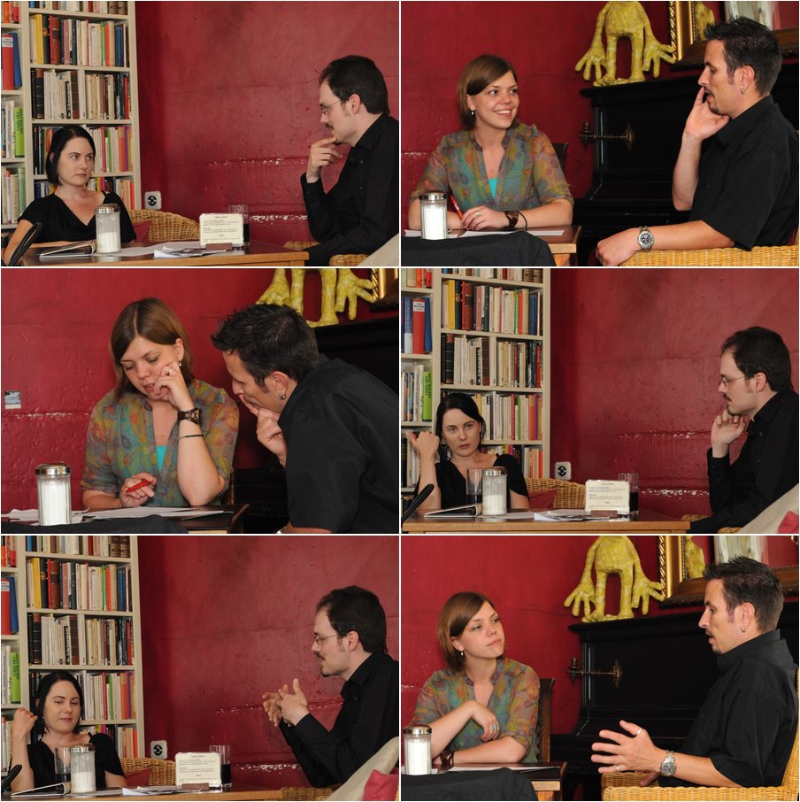 Schauplatz war das Literaturcafé Goldmund in Köln Ehrenfeld, wo um 11:00 die Vertrags-verhandlungen begannen. Nach über einer Stunde intensiver Gespräche und Verhandlungen konnten endlich die Autorenverträge unterschrieben werden.